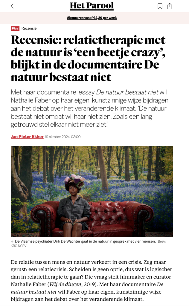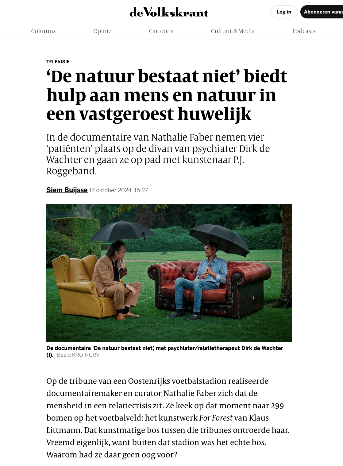 Interview De Natuur Bestaat Niet in de Volkskrant